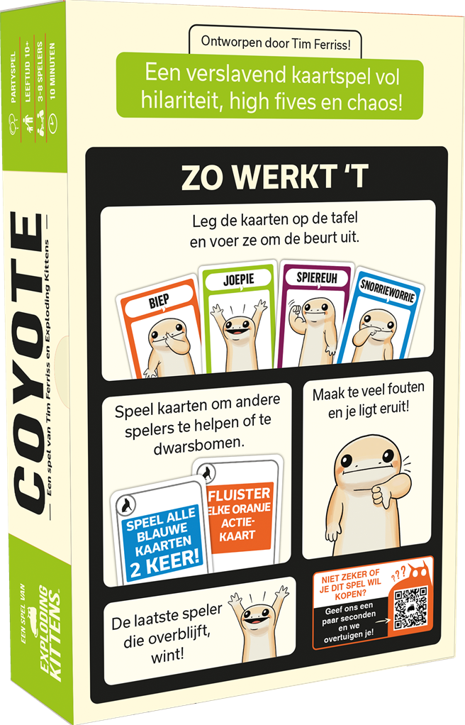 Gemaakt door Tim Ferriss, het brein achter The 4-Hour Workweek, Tools of Titans en meer. Coyote zorgt ervoor dat in dit familiespel iedereen gefocust is én in een deuk ligt.