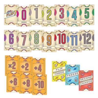 Sound easy? Think again! This isn’t just any deck of cards… In Flip 7™ there’s only one 1 card, two 2’s, three 3’s, etc plus a bunch of special cards that can score you extra points, give you a second chance, or freeze you or your opponents in your tracks.