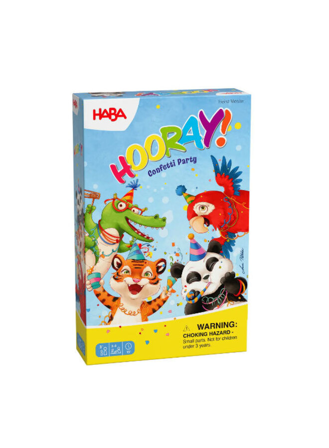 Hoera, het feest kan beginnen! In Hooray! van HABA helpen spelers vrolijke dieren zoals Panda, Krokodil en hun vrienden om kleurrijke confetti rond te strooien. Het doel is om als eerste je eigen dier helemaal in de confetti te hullen. Met...