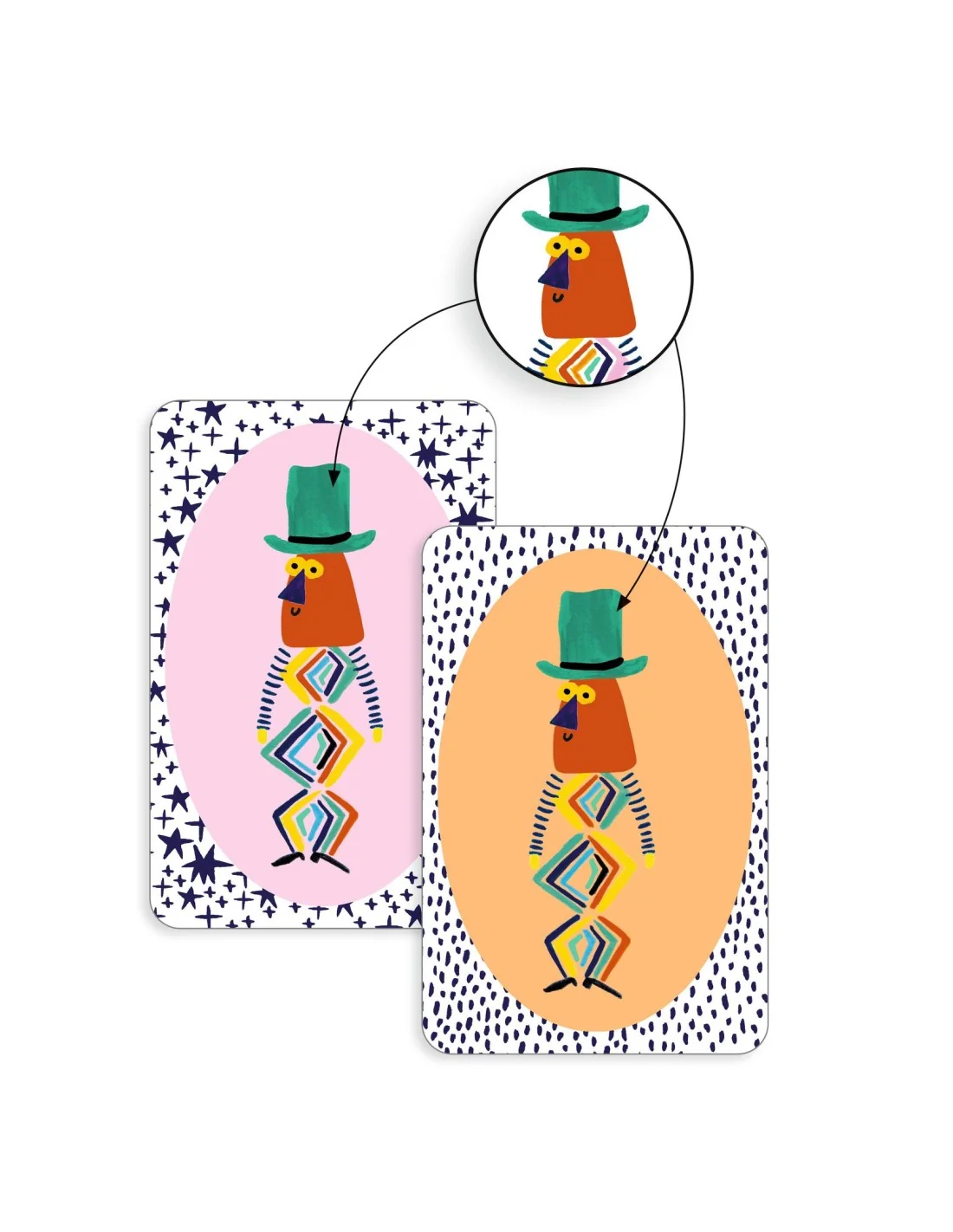 Motief! Kleur! Personage! De combinaties volgen elkaar in een razend tempo op. De eerste die al zijn kaarten kwijt is, heeft gewonnen.