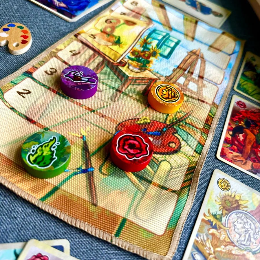 In dit unieke klimspel voor twee spelers debatteren Van Gogh en Gauguin over wat écht belangrijk is bij het tekenen. Elke beurt speel je één kaart uit de vier elementen die nog niet in de huidige truc zijn gespeeld: geld, inspiratie, passie en vaardigheid.